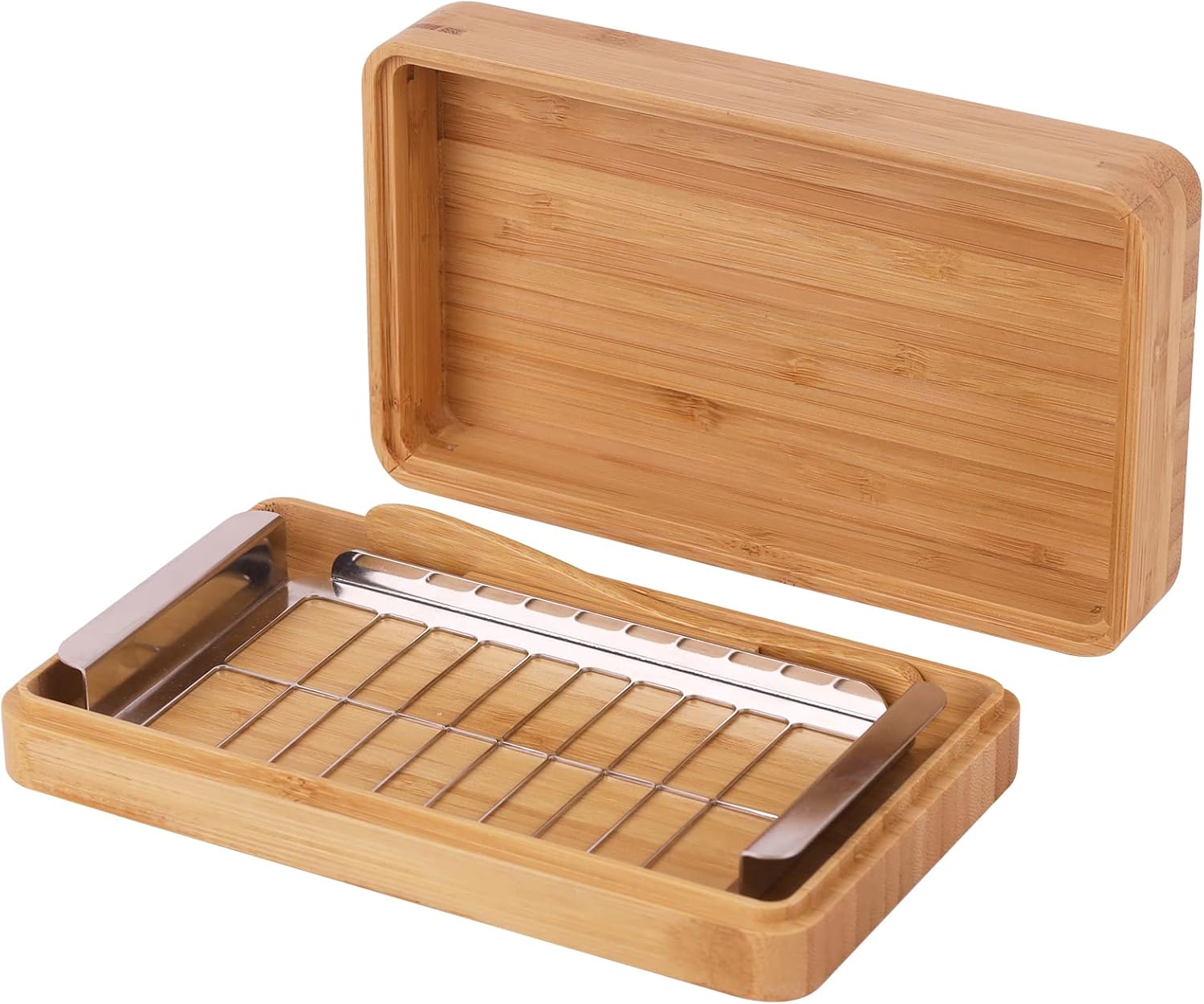 Amazonで調べてみたら、竹やステンレスといった他の素材を使用した同様のバターケースもありました。